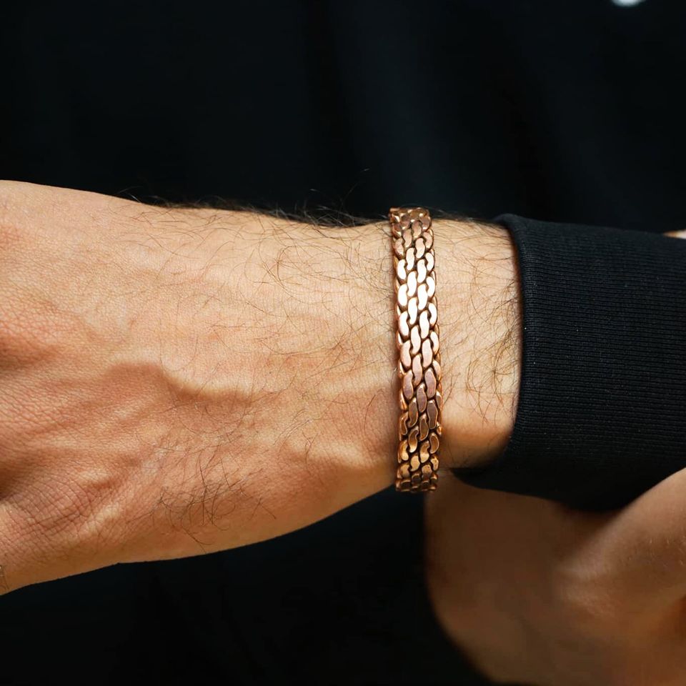 4.أثبتت بعض المصادر أن أساور النحاس تعمل بشكل أفضل من المكملات الغذائية، لأن احتوائها على المعادن الدقيقة تكون أكثر فاعلية، لأنها يمكن أن تدخل مباشرة فى مجرى الدم من خلال العرق وتمد المفاصل والأنسجة بالمعادن.