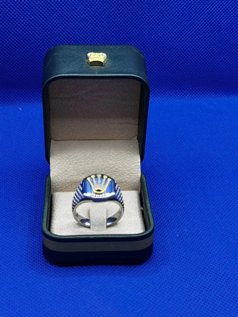 هاد الخاتم من نُقة واضحة، وكيبان فخم فوق اليد. بزاف ديال الرجال كيختاروه حيث كيعطي حضور وراحة فاليوم كامل.